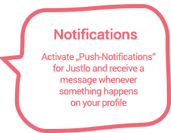 Life nowadays is taking place on the outside! Nobody should stay at home to get to know new people. Use Justlo wherever you want: in the supermarket, in public transport or while paying your grandma a visit. From now on you won't miss any updates!